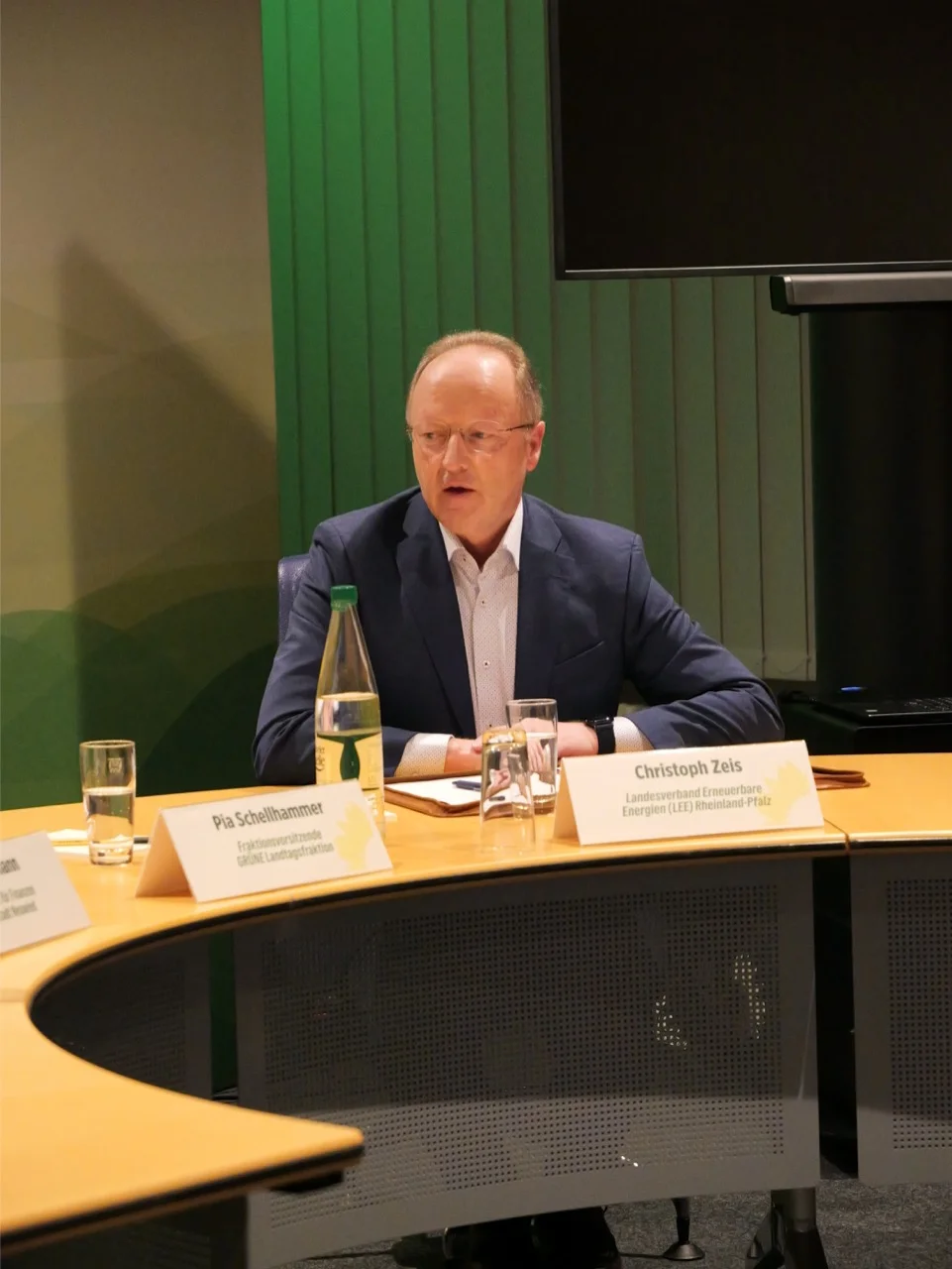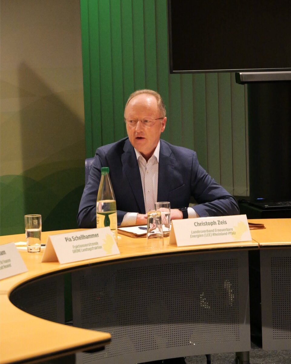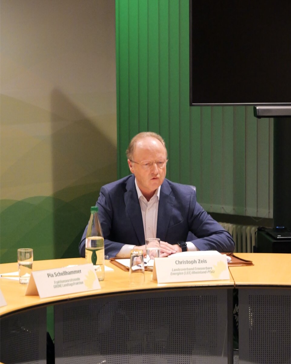 Das Potenzial regionaler Wertschöpfung durch Erneuerbare Energien stand im Zentrum der Podiumsdiskussion. Christoph Zeis zeigte auf, wie Wind- und Solarenergie bereits heute in vielen Kommunen zur Finanzierung von Kitas, Schulen oder Straßen beitragen. „Erneuerbare können bis zu 1,2 Milliarden Euro an kommunaler Wertschöpfung generieren“, so Zeis. Entscheidend sei, dass die Kommunen mehr in Eigenversorgung investieren können, etwa über kommunale Energiegesellschaften. Auch die Wärmewende bietet große Chancen: Investitionen in Wärmenetze, Gebäudesanierungen und Speicherlösungen senken langfristig die Betriebskosten. Beispielhaft vorgestellt wurde das Hallenbad in Oppenheim, das sich vollständig aus erneuerbaren Quellen versorgt, inklusive Wasserstoffproduktion. „Es ist ein Kraftwerk, in dem man schwimmen kann“, so Zeis. Ralf Seemann betonte, dass solche Investitionen sich oft betriebswirtschaftlich rechnen, auch wenn die Rückflüsse erst Jahre später kommen. „Die Herausforderung ist, dass die Kommunalaufsicht eher blockiert und Kommunen keine Kredite gewährt, obwohl sie Investitionen tätigen könnten, die sich langfristig auszahlen.“