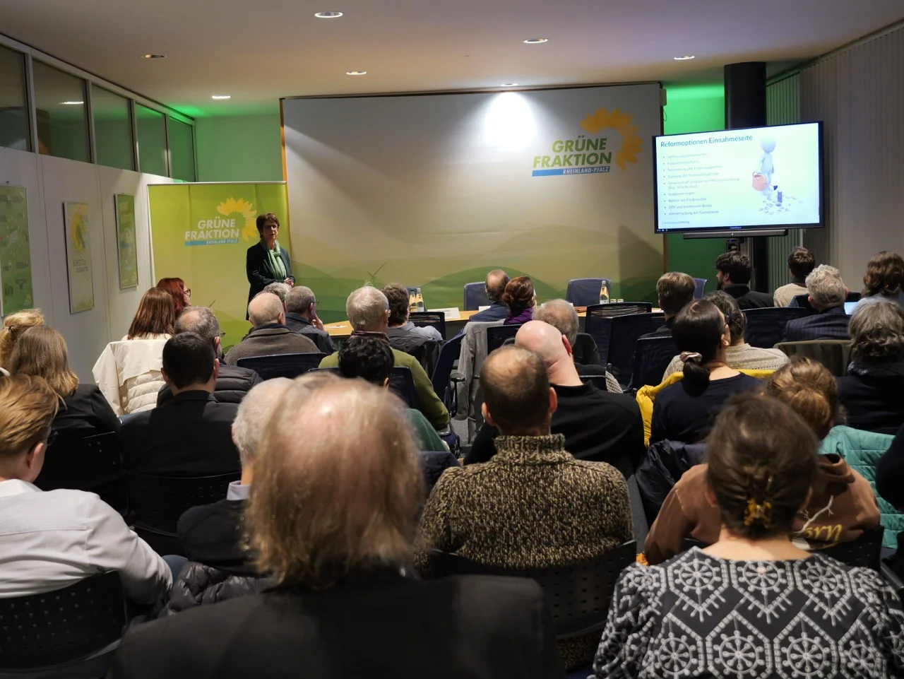Nach einer Begrüßung durch unsere Fraktionsvorsitzende Pia Schellhammer eröffnete Dr. Kirsten Witte, Leiterin des Zentrums für nachhaltige Kommunen der Bertelsmann Stiftung, die Veranstaltung mit einem fundierten Impulsvortrag. Auf dem anschließenden Podium diskutierte sie gemeinsam mit Ralf Seemann (Kämmerer der Stadt Neuwied), Christoph Zeis (Landesverband Erneuerbare Energien RLP) und Fabian Ehmann, energiepolitischer Sprecher der Landtagsfraktion über Wege aus der Finanzkrise.